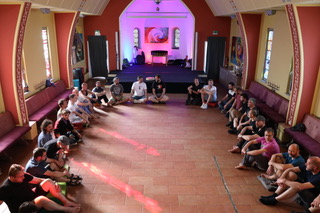 Dies ist nur ein kleiner Ausschnitt. Das Programm umfasste gemeinsames Tönen, Singen Chanten, Gruppenarbeit, Haka, Yoga, Kuschel-Erfahrung, Feuer bohren, Satsang, Atem-Workshops, Meditationen, KravMaga-Einführung, Redekreise, Lagerfeuergespräche, Kakaozeremonie, Ecstatic Dance, Bogenschießen, Fitness-Training, Aufstellungen sowie Kartenlegen.